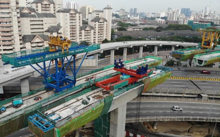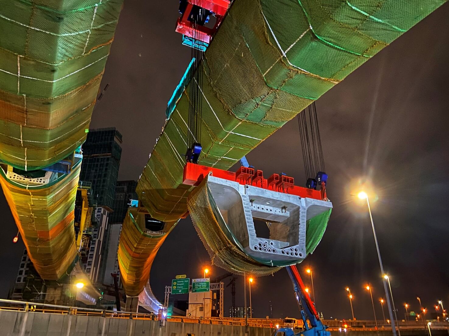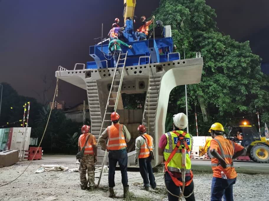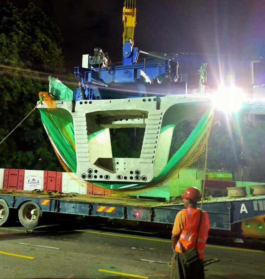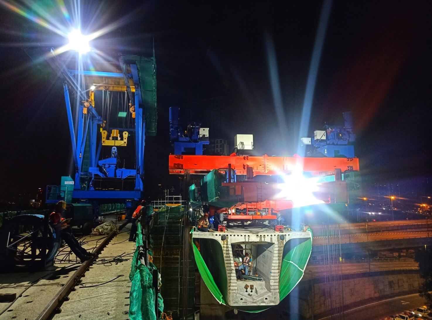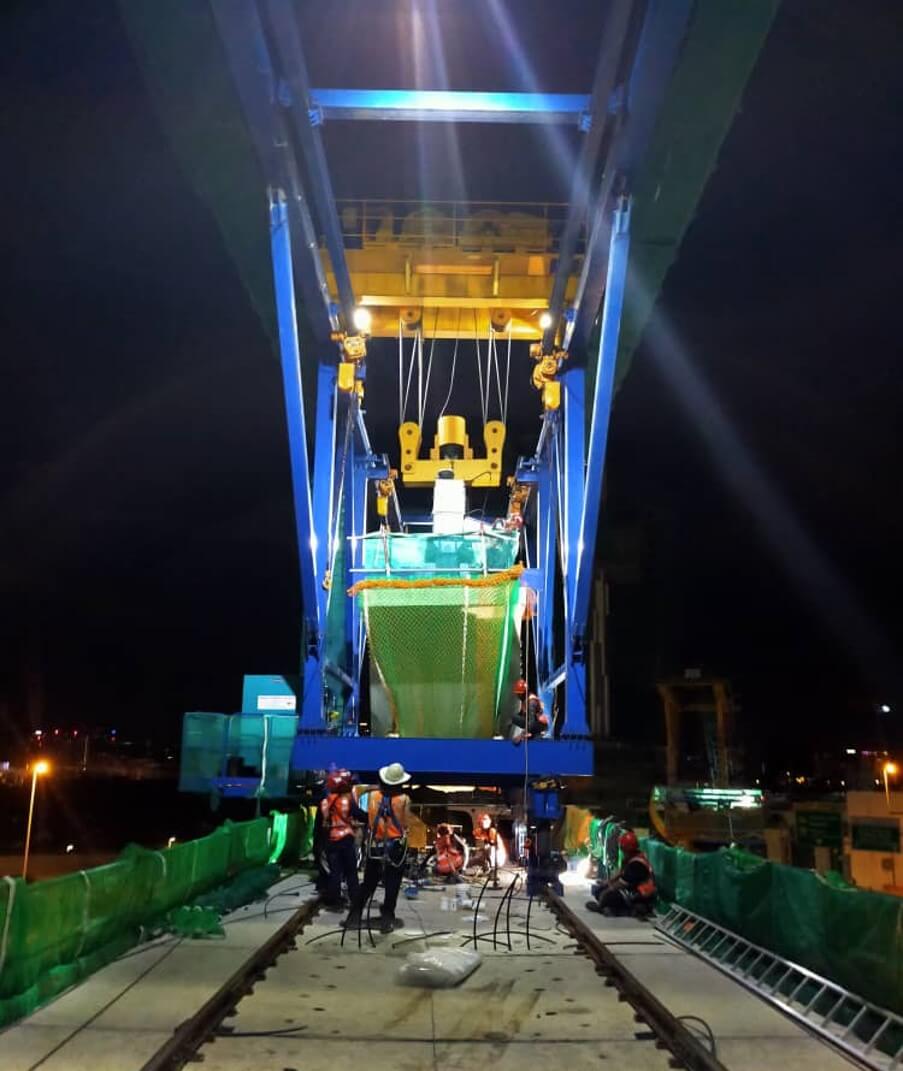 The last segment to be install on the tips of the cantilever was loaded from the position near to the pier and to be relocated by the Underslung Lifting Frame along the alignment of the bridge to the installation position