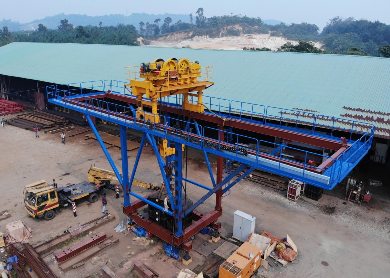 Overhead Lifting Frame will lift up the segment from one tip of the balance cantilever bridge and deliver it to the other tip for installation. This happened when the other side has to access on the ground